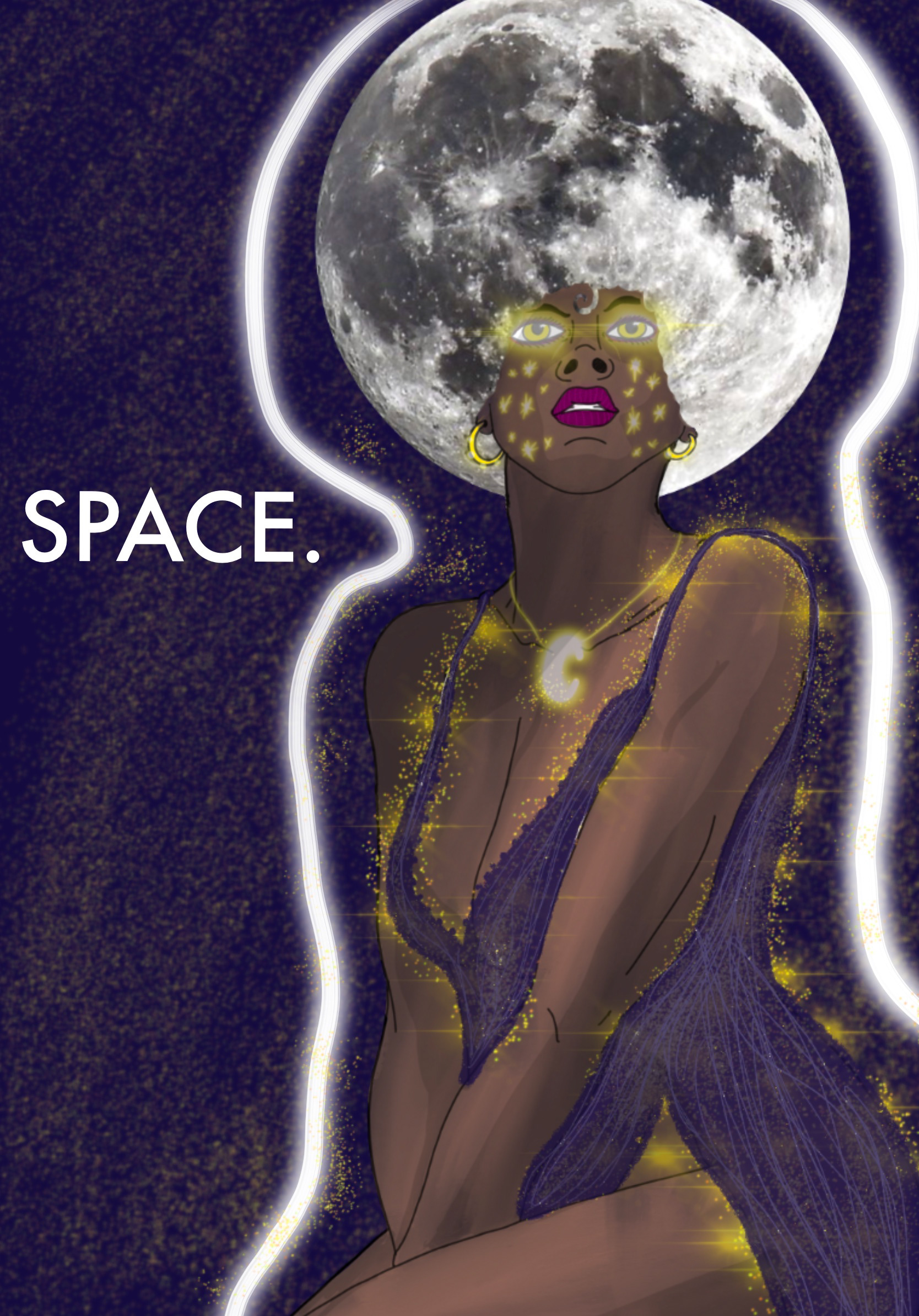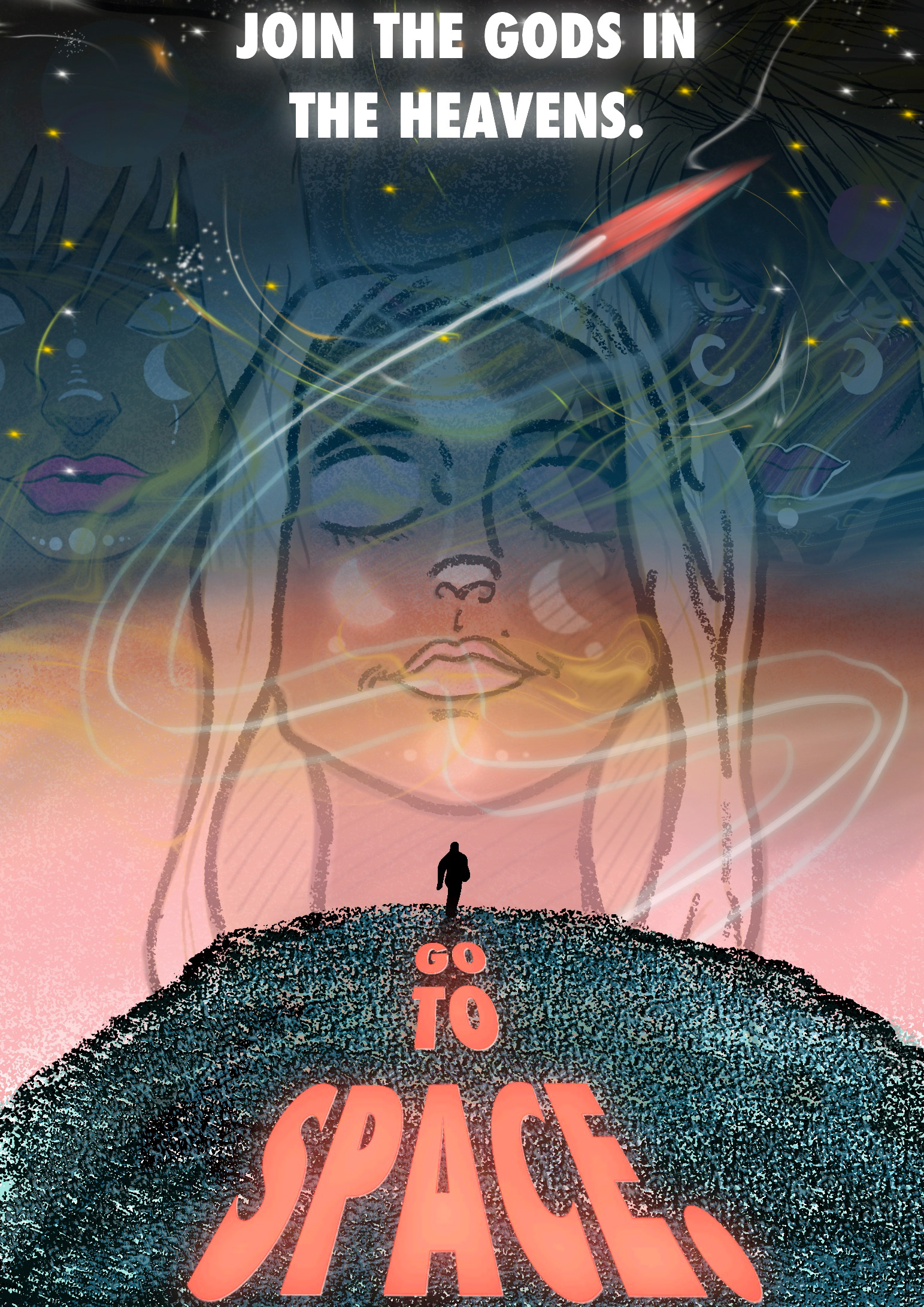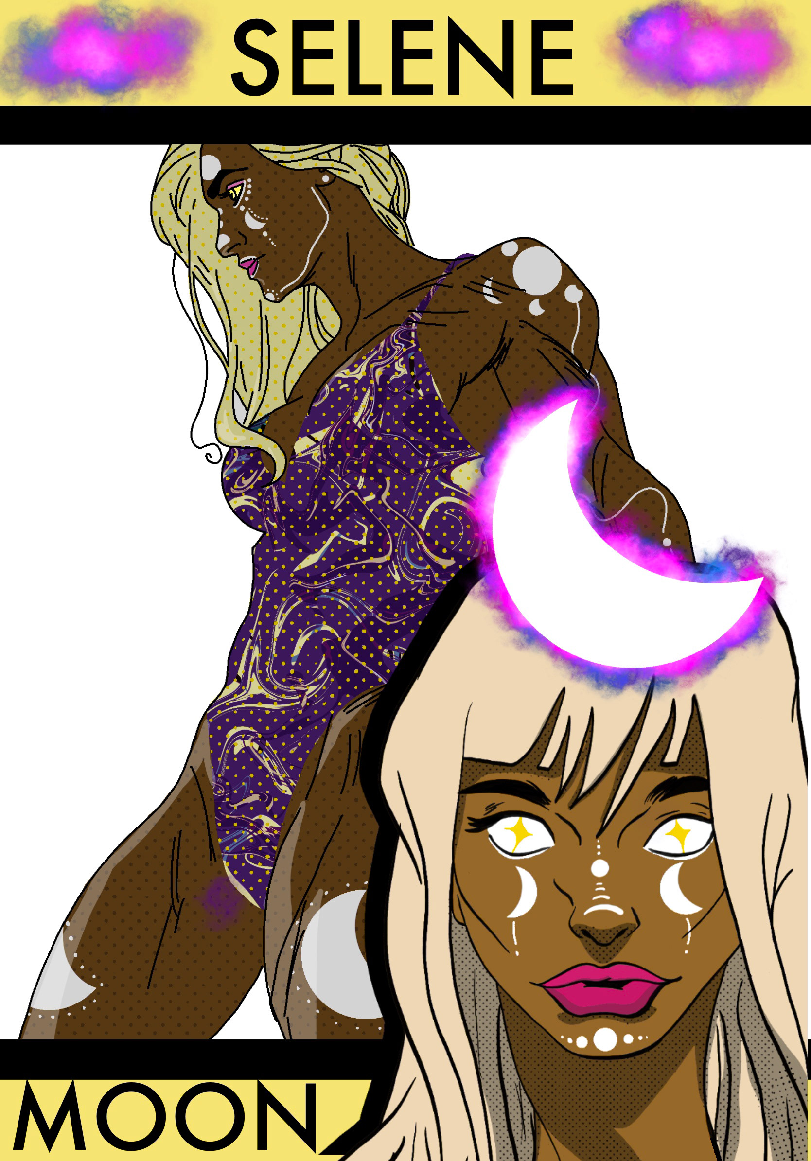 For this brief I split my responses into different parts one part was to focus on the fantasy and awe of space travel and combining religious themes with space travel and I did this by using the Greek Goddess of the moon Selene as the main vocal point of my illustrations as if to say join the gods above the heavens and